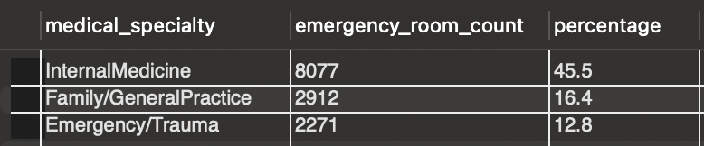 - Emergency admissions from the emergency room are dominated by generalist care (Internal Medicine and Family/General Practice comprising 62%), while elective admissions from physician referrals show greater specialty diversity, with Cardiology, Orthopedics, and General Surgery leading at only 36% combined.