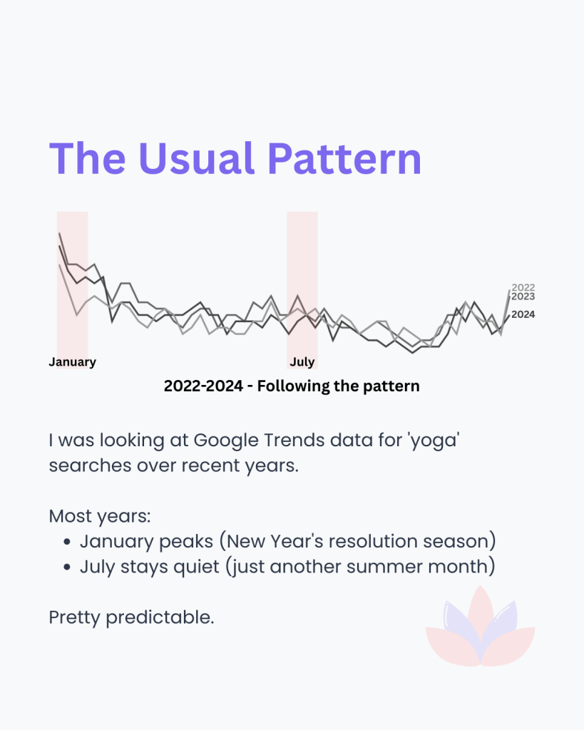 Something unusual happened to yoga searches in July 2025, and I still can’t figure out why.